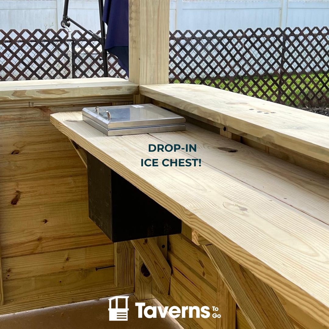 Upgrade your Tavern interior with a commercial grade ice chest.  Make sure to upgrade your interior countertop to 20" and we'll make the cut-out so your ice chest sits in seamlessly.  See here for countertop upgrades.