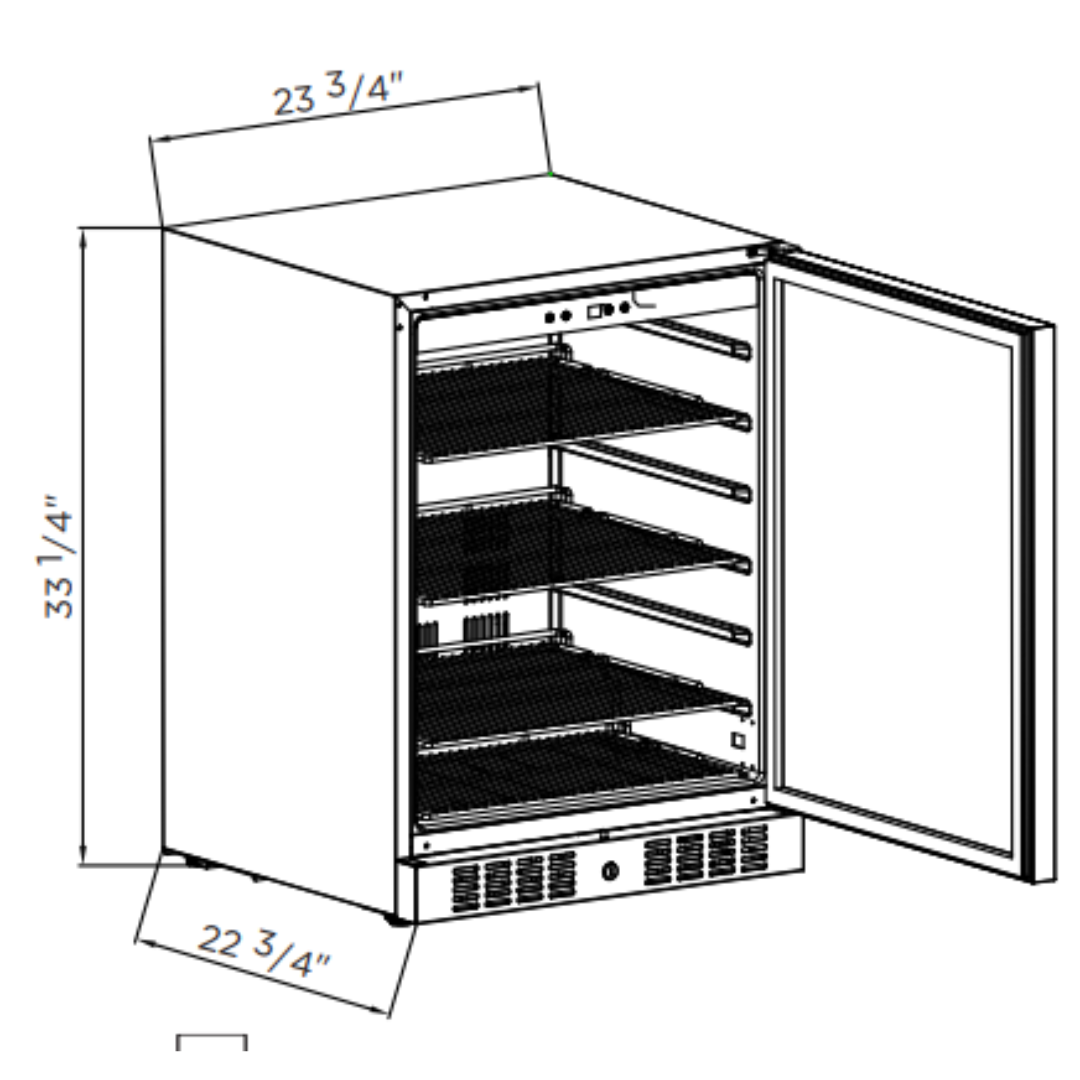 Cutout Dimensions: 33 1⁄4" H x 23 3⁄4" W x 22 3⁄4" D