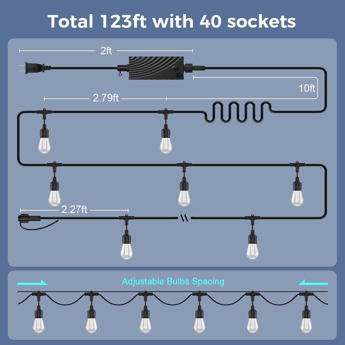 - 1 x 49 FT String Lights with 15 Sockets (For 98 FT: 30 Sockets)