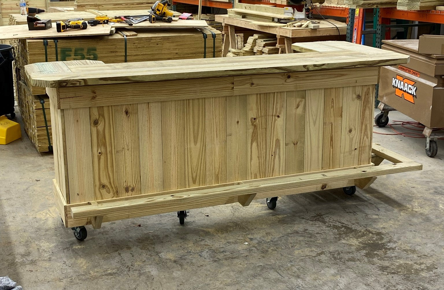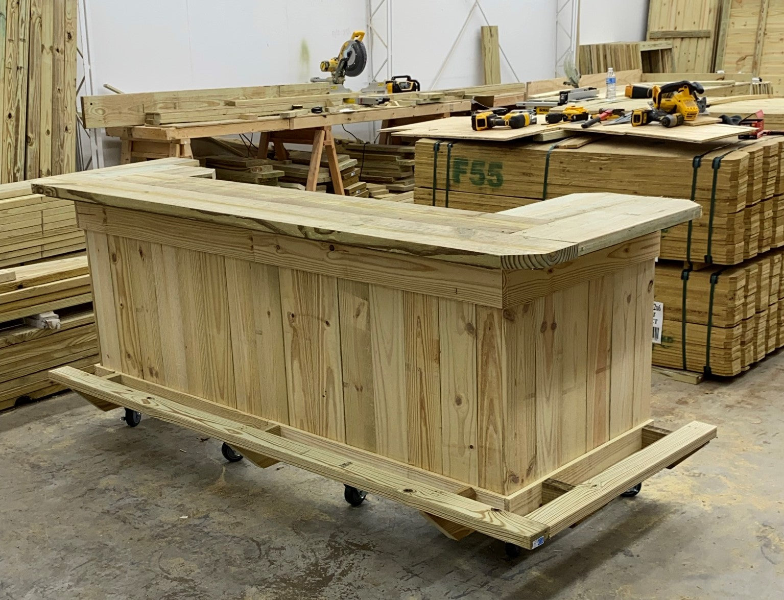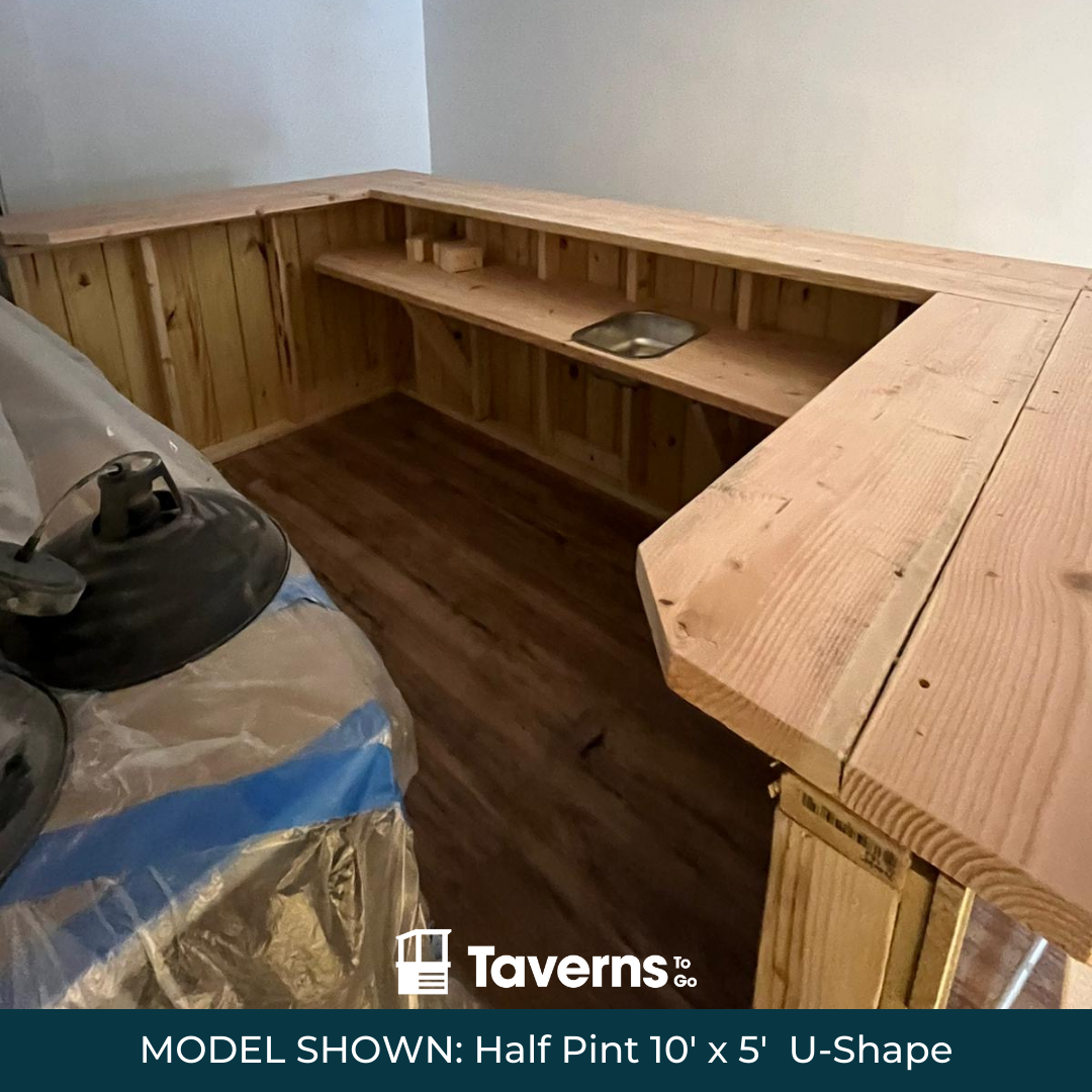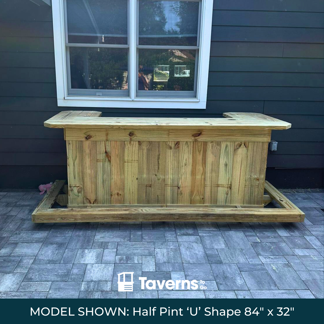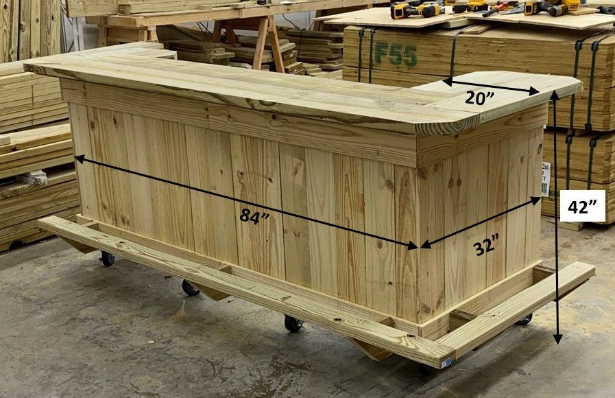 Prefer a more simple bar, with the added benefit of easy moving?...  Check out the Half Pint bar; overall size 84" long x 32" wide sitting on lockable casters creating a bar top height of 42".