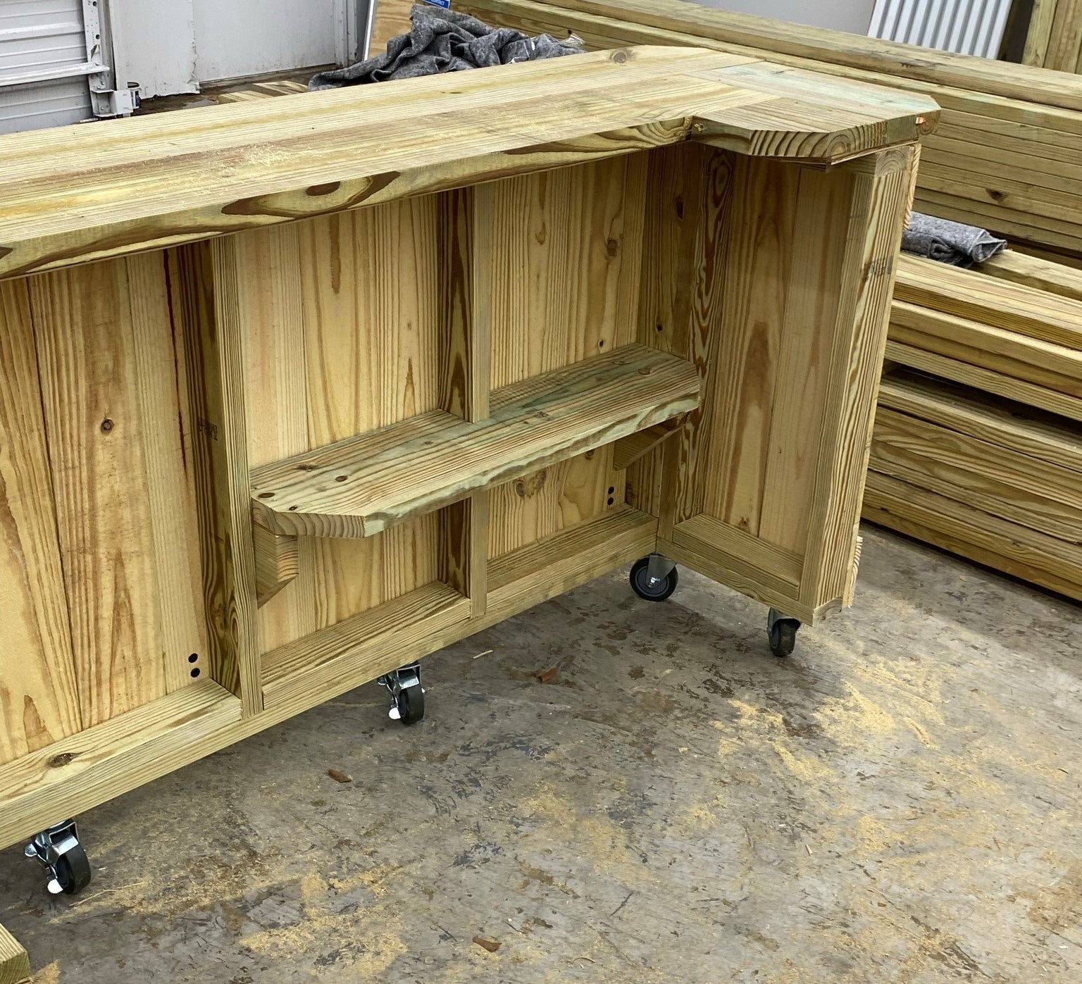 The Half Pint Bar comes with a keg platform with additional interior shelving at knee height.