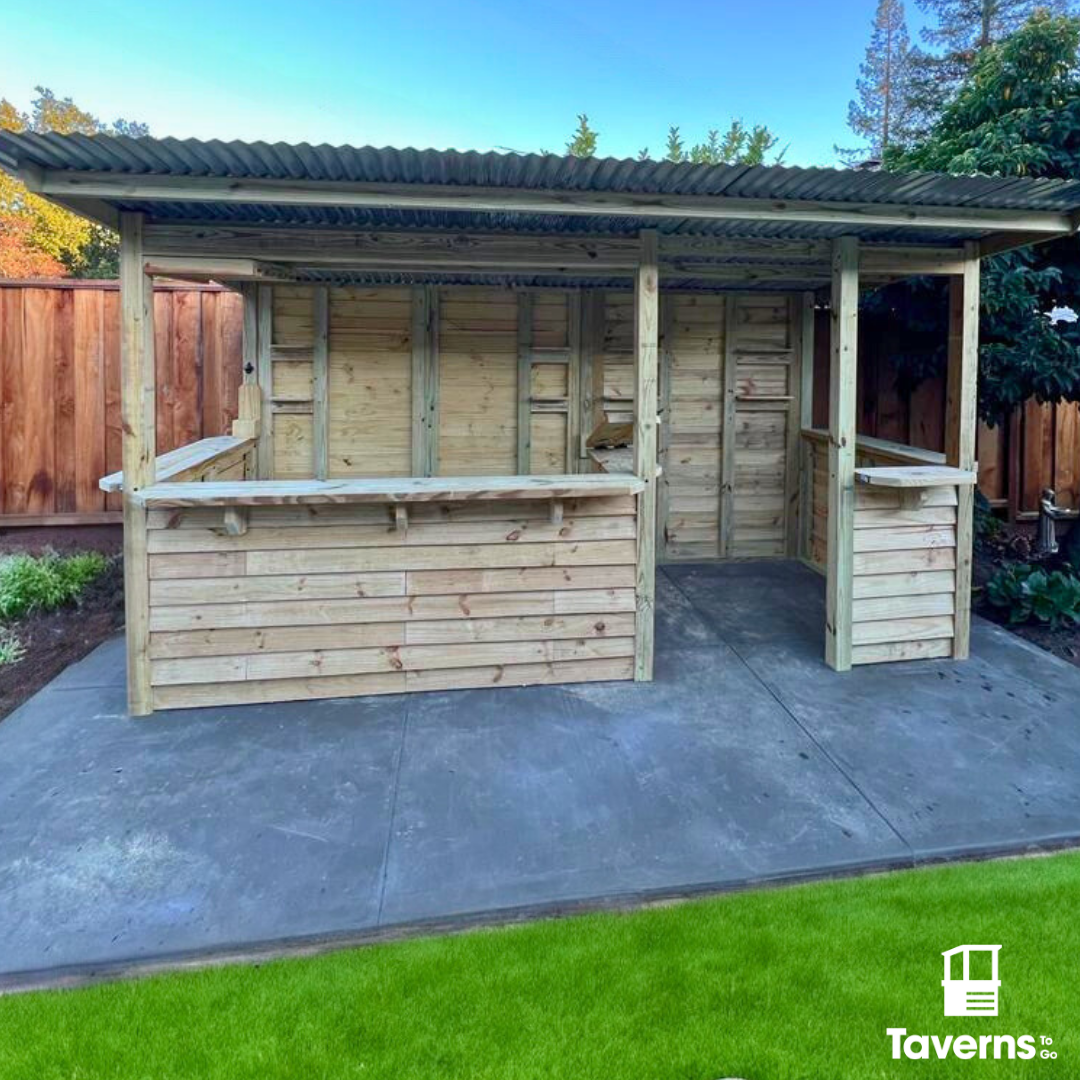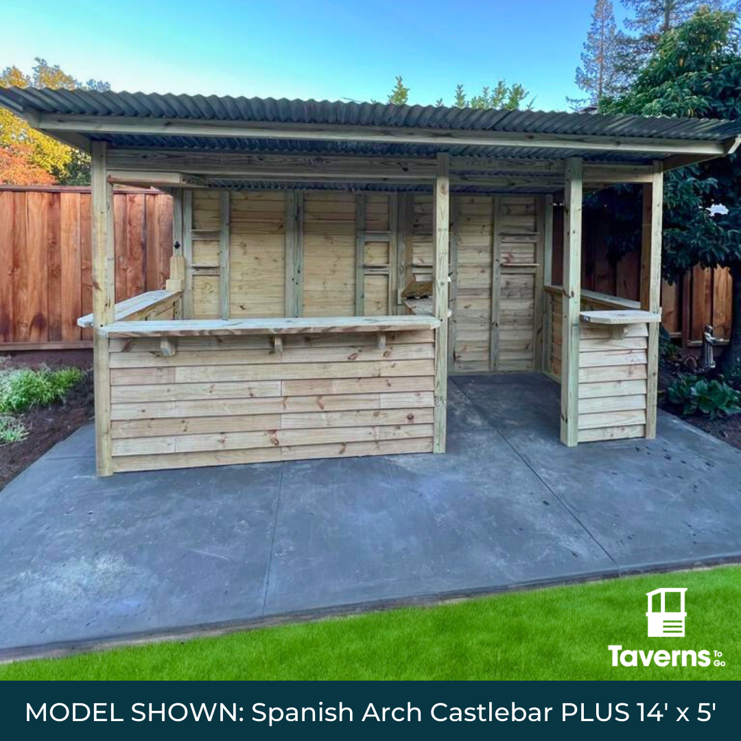 For dimensions, be sure to visit the drawings on our ORIGINAL COLLECTION and add 6' to the width for the grill extension. The extension can be added to the left or right hand side - it's interchangeable, just tell us your preference on the day we arrive to assemble your Tavern.