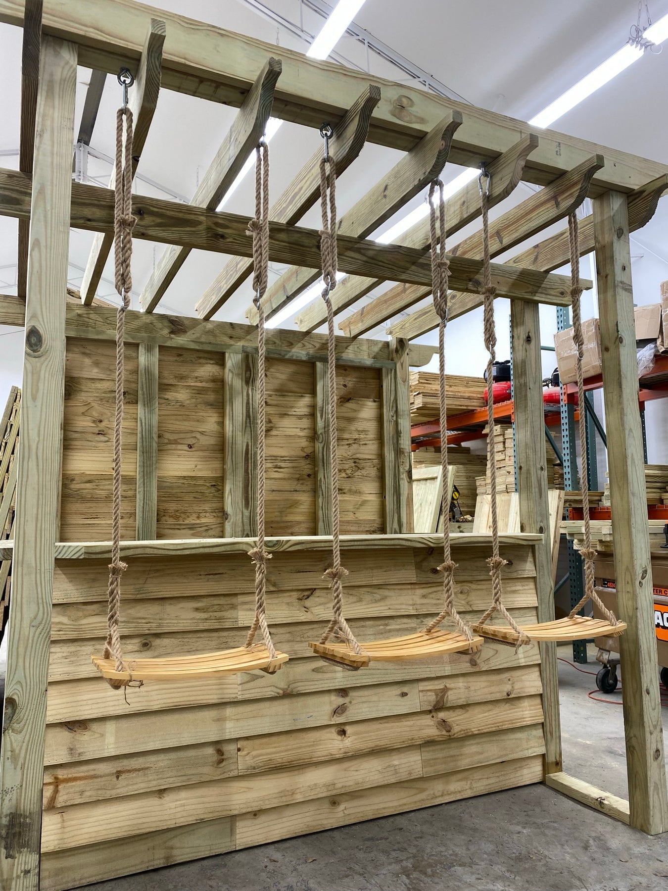 Each swing set is height adjustable and holds a weight of up to 250lbs.
